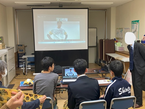また、福岡ソフトバンクホークスの尾形選手とのオンライン交流会を企画していただき、サイン入りユニフォームも頂きました。